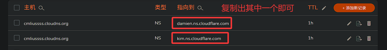 damien.ns.cloudflare.com或kim.ns.cloudflare.com。